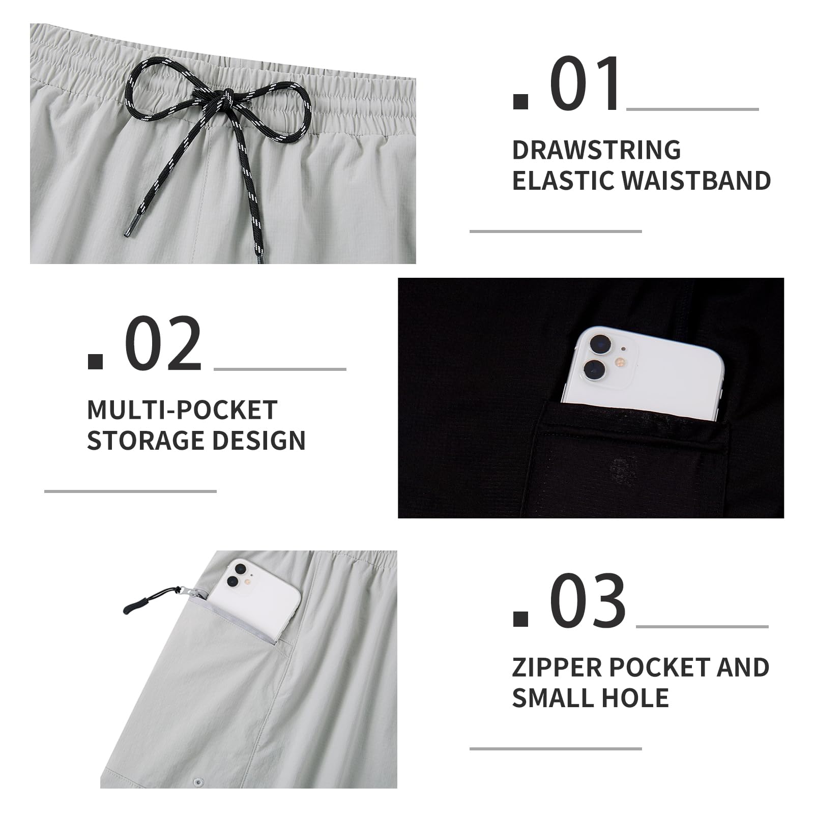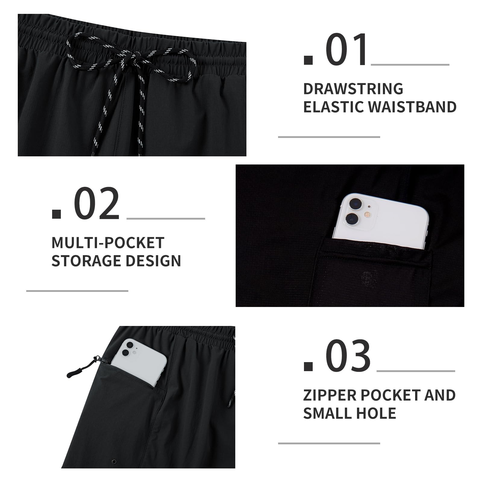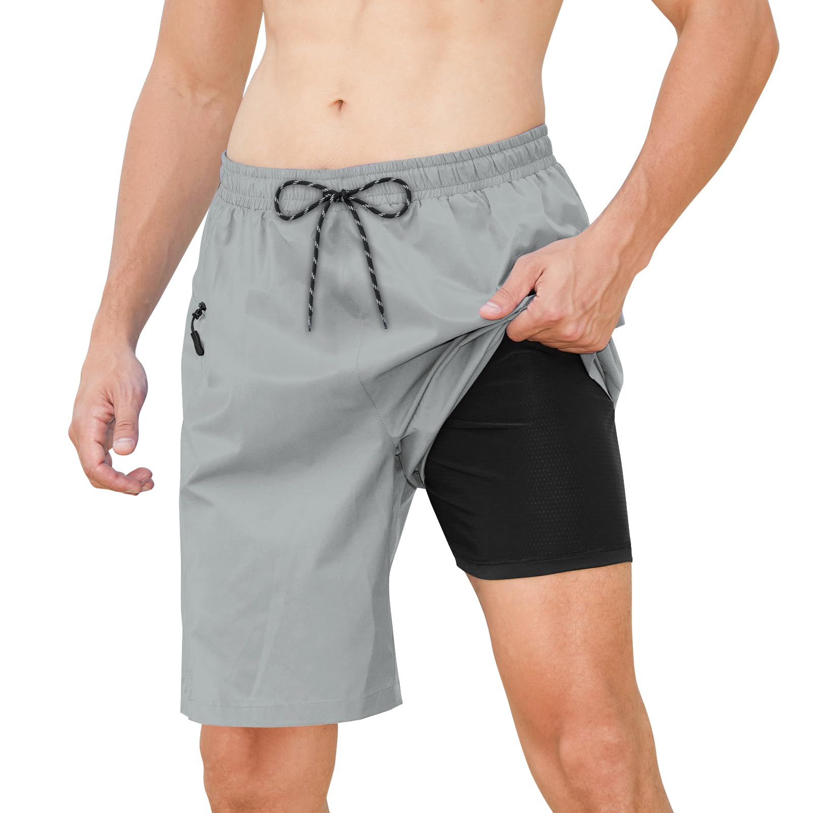 Cozople Mens Swim Trunks with Compression Liner 2-in-1 Quick Dry 9 Inch Board Shorts with Zipper Pockets